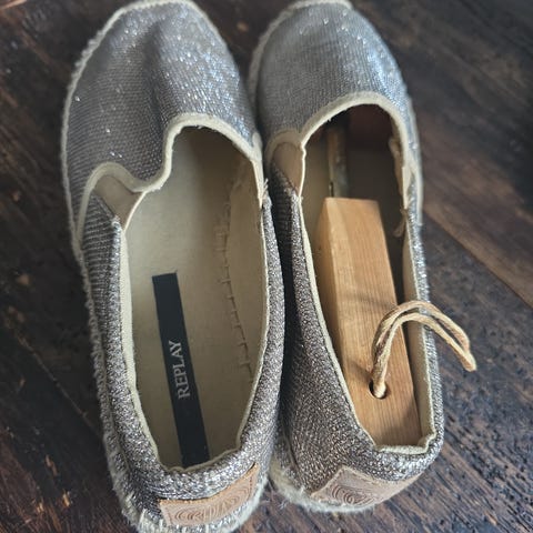 Harmaat Vidorreta espardillot. Vain joitain kertoja käytetty, siistissä kunnossa. Kenkien pintamateriaali mokkanahkaa. Valmistettu Espanjassa. Koko 38 🩶