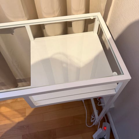Lasinen työpöytä ollut vähäisellä käytöllä, jonka vuoksi myynnissä. Pöydän mitat on 36cm x 100cm. Kaupat kasvotusten mielellään käteisellä