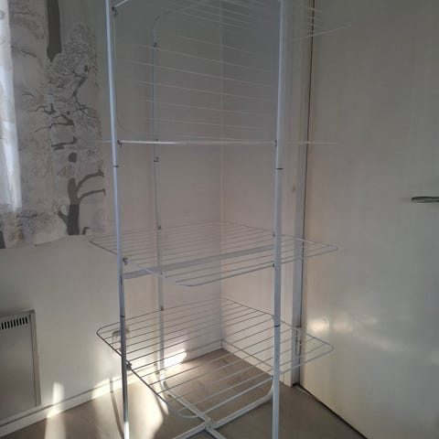 Myydään vähän käytetty haitarimallinen kuivausteline. Ollut käytössä alle 2 vuotta. Myydään muuton vuoksi – uudessa kodissa ei tarvetta. Teline on käytännössä uudenveroinen. Kaikki kiinnikkeet mukana