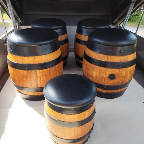 Kaapelikelasta tehty näppärä pöytä. Käytetty juhlissa skumppatarjoilupöytänä - pullot menee kivasti hyllylle.