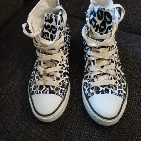 Converse All Star nahkaiset tennarit, koko 37,5. Korkeavartinen malli, klassinen Converse All Star -logo kannassa. Sopivat arkikäyttöön ja vapaa-aikaan. Aika kapea malli, itsellä käyttö jäänyt todella vähäiseksi.