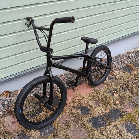 Hyväkuntoinen BMX pyörä, jossa teräsrunko.