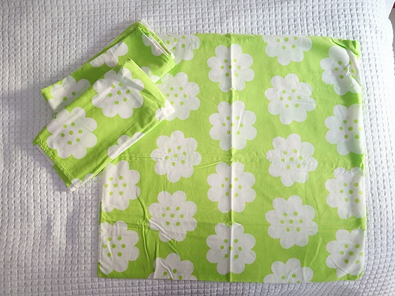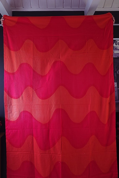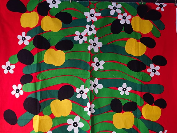 Vintage harvinainen Marimekko kangas. Mustalla pohjalla valkoiset kuviot.