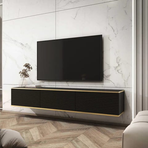 Nero Line – moderni musta seinälle kiinnitettävä TV‑taso