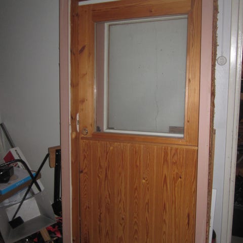 Sopii esimerkiksi mökin tai parven oveksi mataluuden takia. Karmin mitat on 90×185