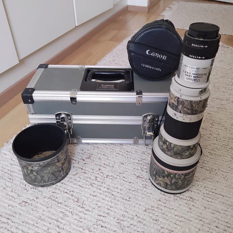 Canon FL 800mm EF-sovitettuna, ei sähköjä.