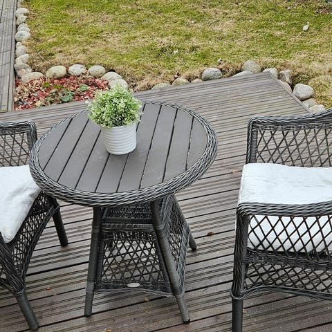 Polyrottinkinen beige kolmen istuimen terassikalustesetti