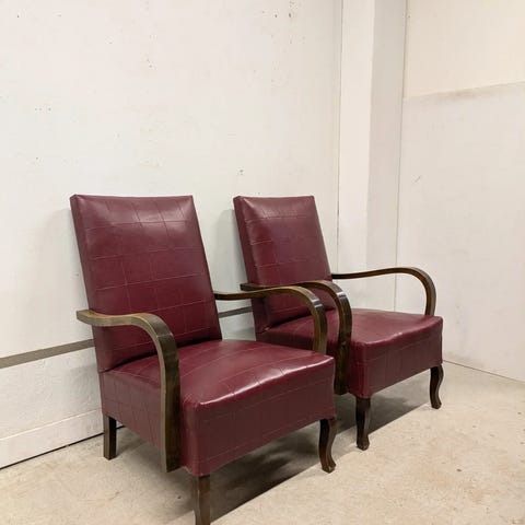 Hienot 40-luvun luvun kerni-nojatuolit etsivät uutta kotia. Nahat erittäin hyvässä kunnossa ikäisekseen. Ei rikkoja. Puuosissa ajan tuomaa patinaa. Rungot ja istuimet kunnossa. Myydään parina.