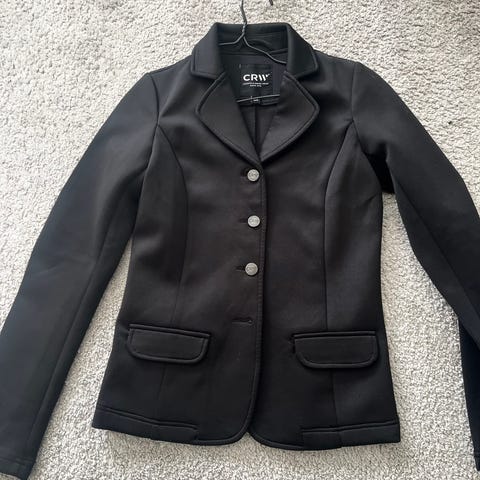 CRW ratsastuskisatakki, koko 44 sopii M/L lyhyttä mallia. Väri musta. Edessä napitus. Takissa halkijot selkäpuolella. Takki on uusi laput otettu pois ei kertaakaan käytetty.