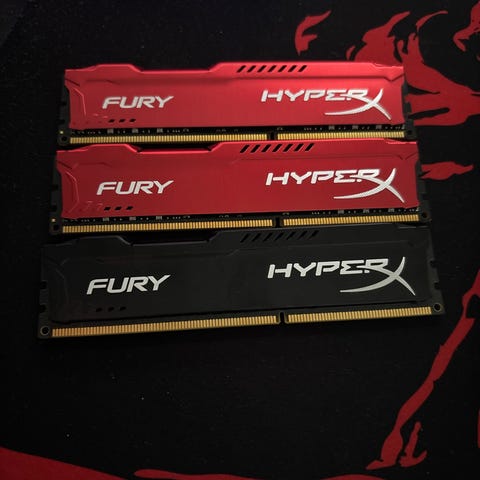 HyperX Fury DDR3 RAM-muistimoduulit, yhteensä 2 kappaletta. Molemmissa on musta jäähdytyssiili. Sopii DDR3-muistia käyttäviin pöytätietokoneisiin. Tarkemmat tekniset tiedot, kuten kellotaajuus ja kapasiteetti, kannattaa varmistaa moduulien tarrasta tai valmistajan tiedoista.