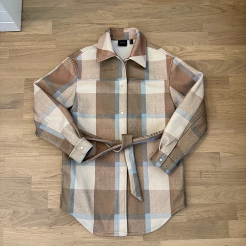 Erittäin siisti villakangastakki. Koko S vaikka lukee M niin siro. Vähän paksumpaa kangasta hyvä kevät/syksy.