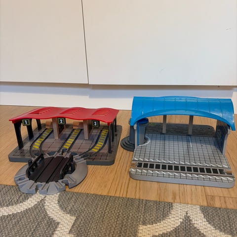 Sekalainen setti junaradan osia,vaunuja sekä juna-asema. Meille käytettynä tullut,mutta ei ole tullut käyttöön. Asemassa toimii äänet sekä valot,kortti mukaan jossa Lontoo valotaulu. Nouto niemenrannasta.