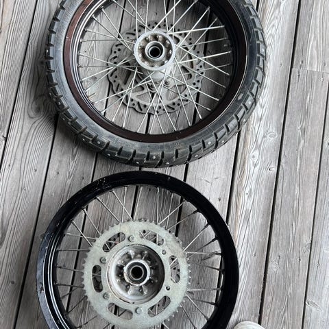 Valkoiset pinnasmotot jotka ovat 17 tuumaiset, Vanteiden akselikoko on 15mm. Vanteet ovat erittäin hyvässä kunnossa ja niissä ei ole mitään vikaa. Lisäkuvia tai tietoja saa kysymällä.