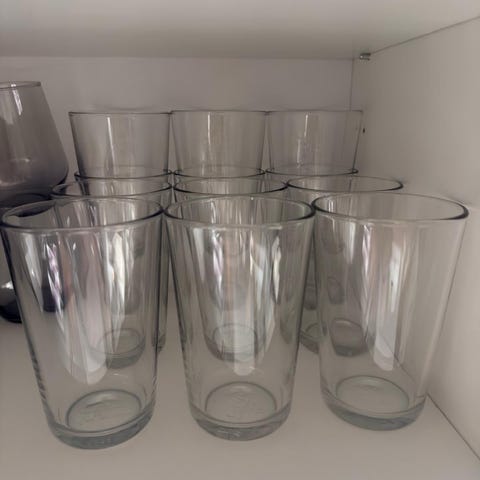 IKEA juomalasit kirkasta lasia. Viisi lasia, uritettu ja monikulmainen muoto.
