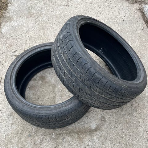 Hankook Ventus 1kpl 225/40 R18 92W rengas. Kesärengas, joissa profiili 40, leveys 225 mm ja vannekoko 18 tuumaa. Kantavuusluokka 92 ja nopeusluokka W. Renkaiden kulutuspinta näkyy kuvissa, urasyvyys mitattu 5mm.