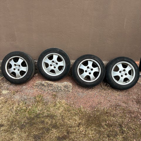 Lipoissa pientä lakkavikaa ja yhdessä vanteessa pientä kanttari osumaa mutta muuten hyväkuntoiset ja suorat.