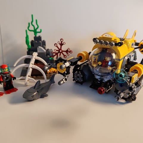 LEGO City sukellussukellusvene rakennussarja, toisesta "kourasta" puuttuu kumilenkki, muuten osat tallessa.