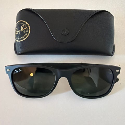 Ray-Ban Wayfarer aurinkolasit unisex. Mustat kehykset ja tummat linssit. Klassinen Wayfarer-malli, joka sopii sekä naisille että miehille. Mukana Ray-Ban-kotelo kuvien mukaisesti.