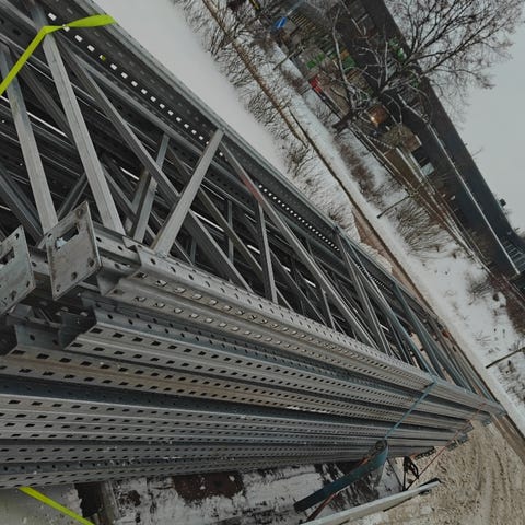 Materiaali tukevaa teräsprofiilia ja epoksilakattu harmaaksi.