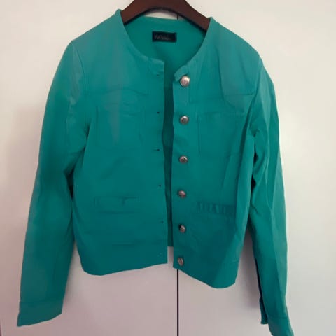 Milk Copenhagen S kevättakki. Vihreä ulkoa ja kullanvärinen sisävuori.