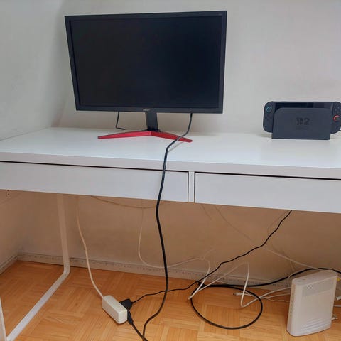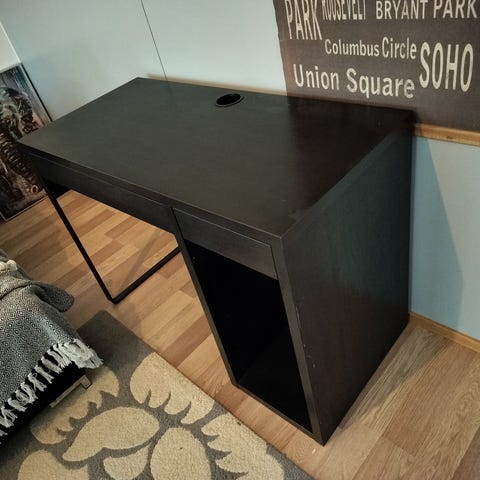 Hyväkuntoinen Ikean Micke tietokonepöytä.