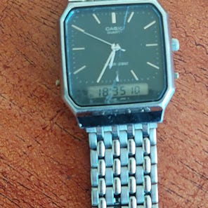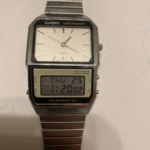 Pretty rare vintage digital watch with special wide temp display in very good condition. Very clear glass and all functions working, including sound & light. Full stainless steel case & bracelet made in japan.