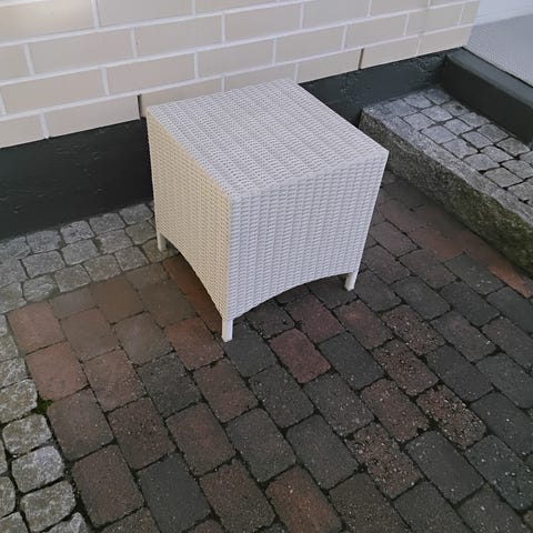 Polyrottinki pöytä. Pinta ja sivut aika karun näköiset mutta muuten ehjä ja todella tukeva. Liina päälle?