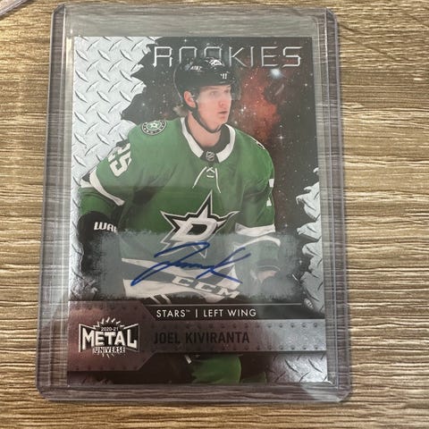 Upper Deck 2020-21 Clear Cut Hockey Joel Kiviranta jääkiekkokortti, jossa pelaaja Dallas Stars -seurasta. Kortti on tulokaskortti (RC) ja sisältää pelaajan nimikirjoituksen painettuna kortin etupuolelle. Kortti on muovikotelossa säilytystä varten. Soveltuu keräilyyn ja kokoelman täydentämiseen NHL- ja Joel Kiviranta -aiheisissa kokoelmissa.