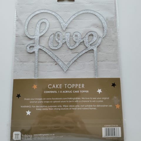 Hopeanvärinen kakunkoriste, sydämet kuviolla, n. 14,5cm.