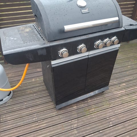 Grillissä on kolme poltinta ja lämpömittari kannessa. Sivutasot ovat taittuvaa mallia. Liikutteluun grillissä on kaksi pyörää.