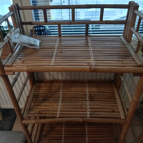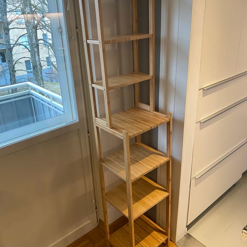 Myydään Ikean Rågrund-hylly bambusta. Siisti kunto, ollut aiemmin käytössä kylpyhuoneessa. Hylly tällä hetkellä kasattuna ja siten helppo kuljettaa, voimme myös kasata hyllyn tarvittaessa.