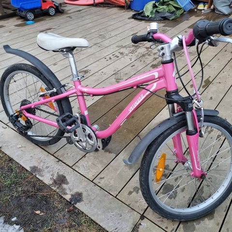 VARATTU! Myydään hyväkuntoinen Specialized Hotrock 20”. Käsijarrut. 7-vaihteinen Shimano RevoShift. Pientä käytön jälkeä näkyy. Huollettu viime kesänä. Takakumi hieman kulunut. Mukaan paketissa oleva Schwalbe Rocket Ron pyöränkumi (samanlainen kuin edessä). Nouto.