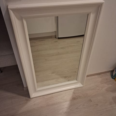 IKEA peili, jossa leveä puukehys ruskean sävyssä. Peiliä voi käyttää esimerkiksi seinälle kiinnitettynä tai lattialle nojaavana sisustuspeilinä. Sopii käytettäväksi eri huoneissa, kuten eteisessä, makuuhuoneessa tai olohuoneessa osana sisustusta.