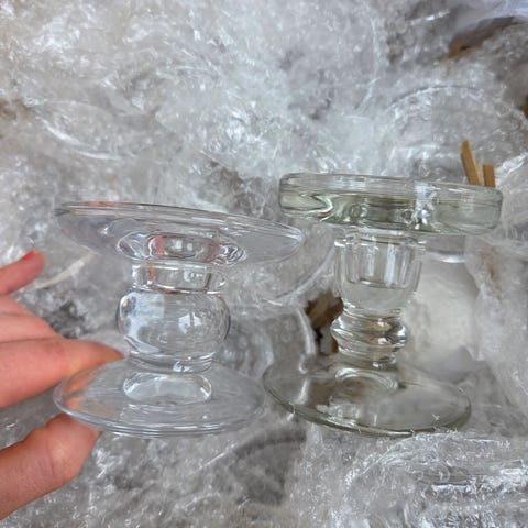2kpl Pentti SARPANEVAN Singneerattua Pronsista kynttilänjalkaa.ja 2kpl Lasista kynttilän valumasuojaa.Kynttilänjaloissa on koristeellinen, pitsikuvionenvarsi ja leveä, pyöreä jalusta. Sopivat kruunukynttilöille. Kuvissa näkyy pinnan patinaa ja käytön jälkiä. Myydään parina.