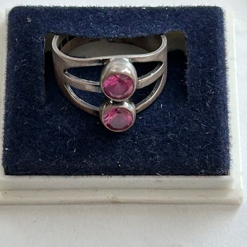 Hopea sormus pinkillä timantilla. Hyvässä kunnossa, pidetty vähän. Koosta ei tietoa mutta sopii ainakin itselle hyvin nimettömään.