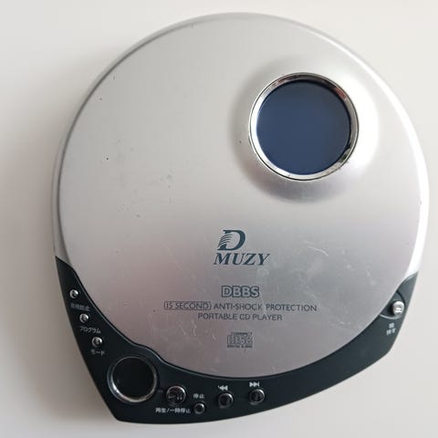 Hyvässä kunnossa cd soitin. Analoginen ulostulo millä voi kytkeä suoraan vahvistimeen. Toimii kahdella AA-paristolla tai akulla. Paristojen säästämiseen voi käyttää normaalia puhelimen 5v laturia.