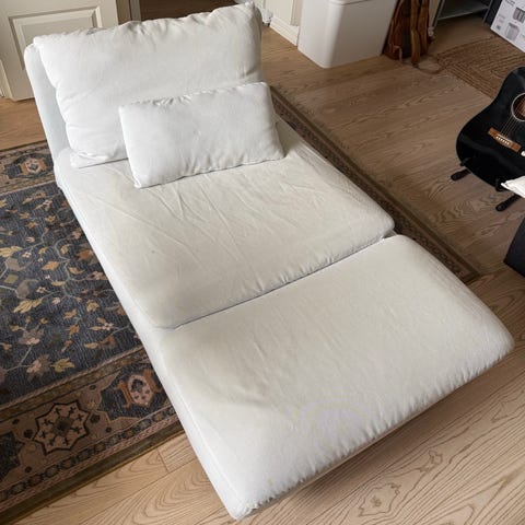 Söderhamn valkoinen rahi ja divaani, kangas Finnsta. Myynnissä yhdessä tai erikseen. Oikein hyvässä kunnossa.