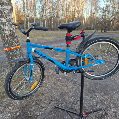 Turkoosi . Kevytkulkuinen , jalka- ja käsijarrulla . Suositus 110 - 130cm . Juuri huollettu eli valmis käyttöön .