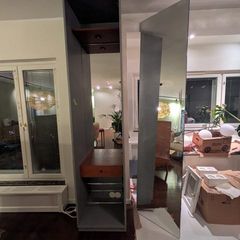 Ostaja noutaa kaapin.