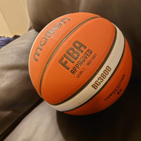 Molten GF6X koripallo. FIBA-hyväksytty malli, jossa pintamateriaalina nahka. Tarkoitettu sisäkäyttöön, hyväkuntoinen. Koko 6
