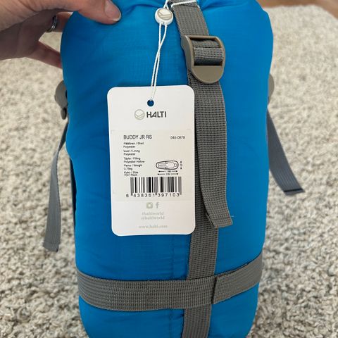 Halti Buddy makuupussi sininen. Kevyt, kompressiopussiin pakattava makuupussi retkeilyyn ja leirintään. Ulkopinta sininen, sisäpinta vaalea. Kiristettävä huppuaukko ja harmaat kiristys- ja kantohihnat. Soveltuu yleiskäyttöön ulkoiluun, telttailuun ja mökkikäyttöön. Lasten malli. Ollut todella vähällä käytöllä