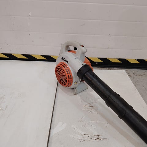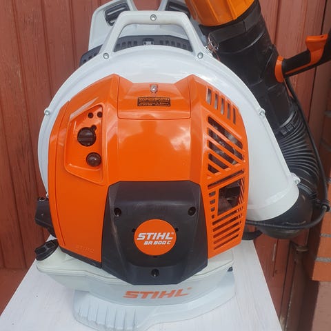 Uusi ja käyttämätön lehtipuhallin, ollut esittelykappale myymälässä.