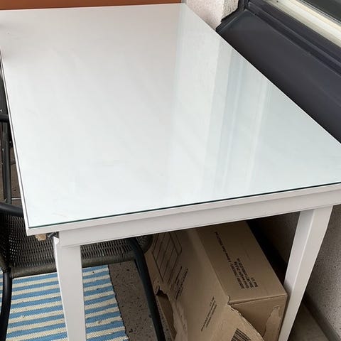 Käytetty ruokapöytä, kiiltävä pintainen, käytönjälkeä löytyy mutta ei kuitenkaan romukunnossa.