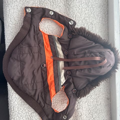 TopCanis koiran takki, väri musta. Takissa on kauluksen ja selkäosan suojaava malli sekä säädettävät remmit, joiden avulla takki pysyy koiran päällä. Sopii koiran ulkoiluun viileämmällä tai sateisella säällä. Materiaali vettä hylkivää kangasta. Ollut kääpiösnautserilla.