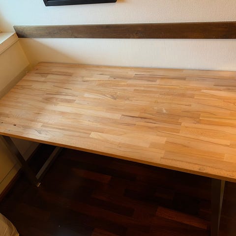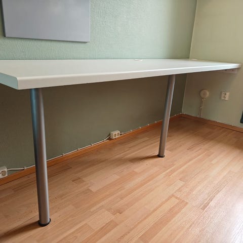 Pieni työpöytä. Pyörät alla. Siistissä kunnossa, kansilevyä täytyy kiinnittää paremmin. Ei vaikuta itse käyttöön millään tavalla kuitenkaan. Saa hakea pois.