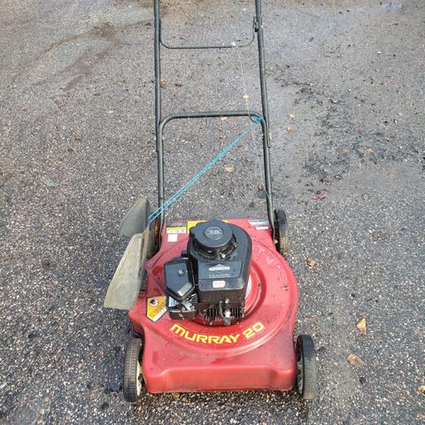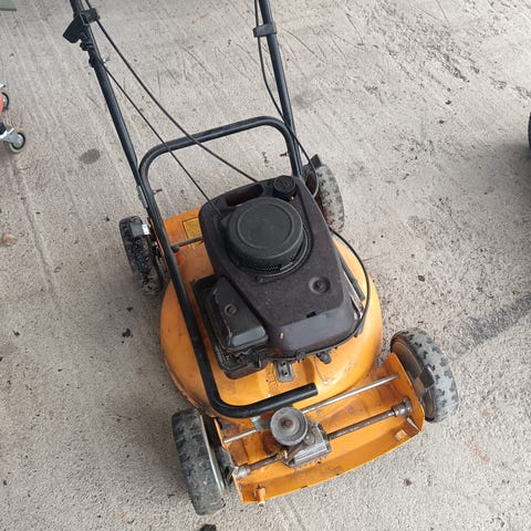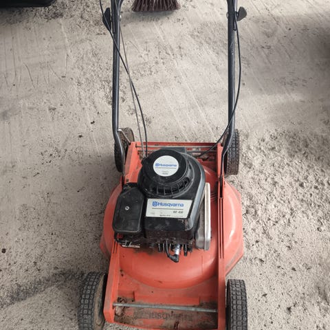 Ruohonleikkuri, jossa on helposti käynnistyvä Briggs & Stratton Quantum 50 moottori. Kahva on taittuva säilytystä varten.