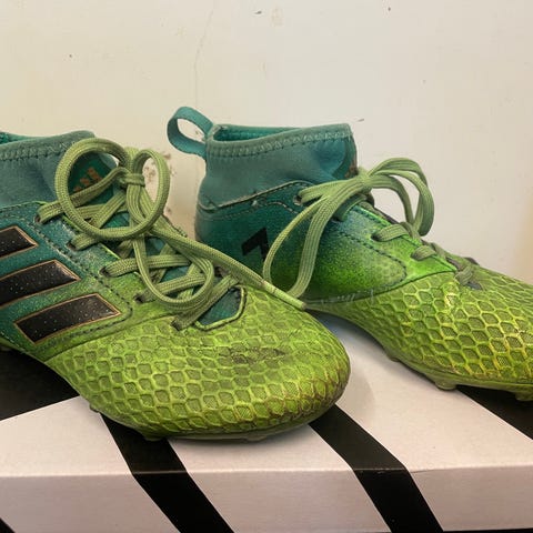 Adidas jalkapallokengät. Koko 31. Kengissä on synteettinen päällinen, sukka ja nauhakiinnitys. Soveltuvat tekonurmi ja nurmikentälle jalkapallon pelaamiseen. Kunto hyvä, napit jonkun verran edestä kuluneet.