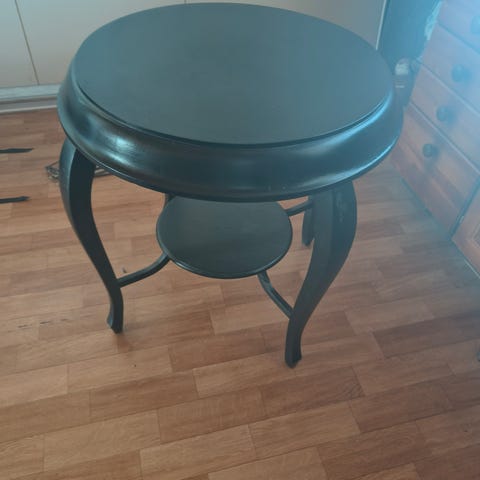 Myydään hyväkuntoinen pyöreä puunvärinen pöytä.