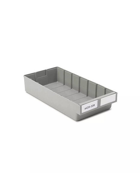 Kotimainen ja laadukas Trestonin hyllylaatikko pientavaravarastointiin. Hyllylaatikon aaltopohja tekee pientavaroiden poiminnasta vaivatonta ja estää samalla tavaroiden liukumisen laatikossa. Suojalevyllä varustettu etiketti tarjoaa runsaasti tilaa tuotetiedoille ja sen suojalevy takaa, että etiketti pysyy siistinä ja luettavana pitkään.