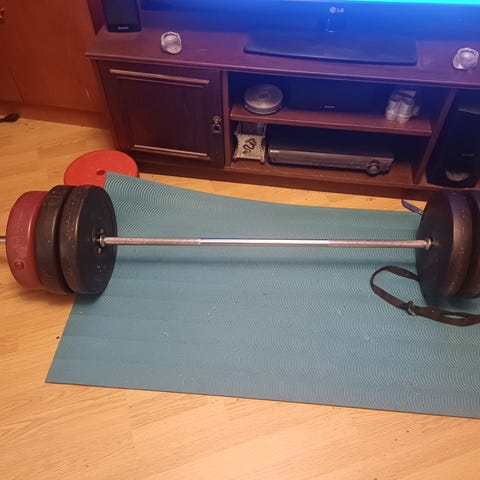 Tanko (20 kg) ja levypainot (4×10kg)